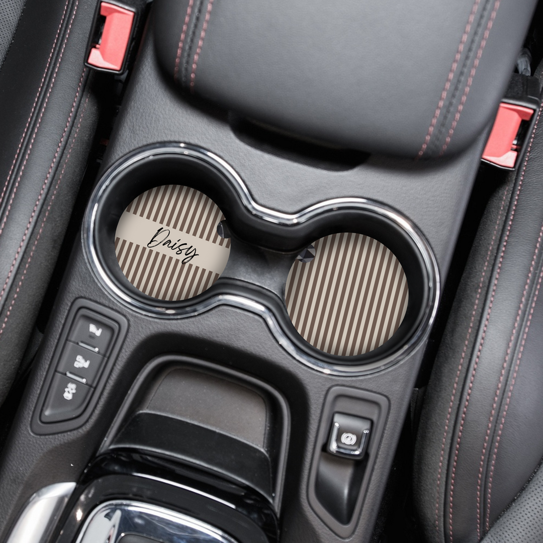 Personalised Name Car Coasters - Chestnut Stripe