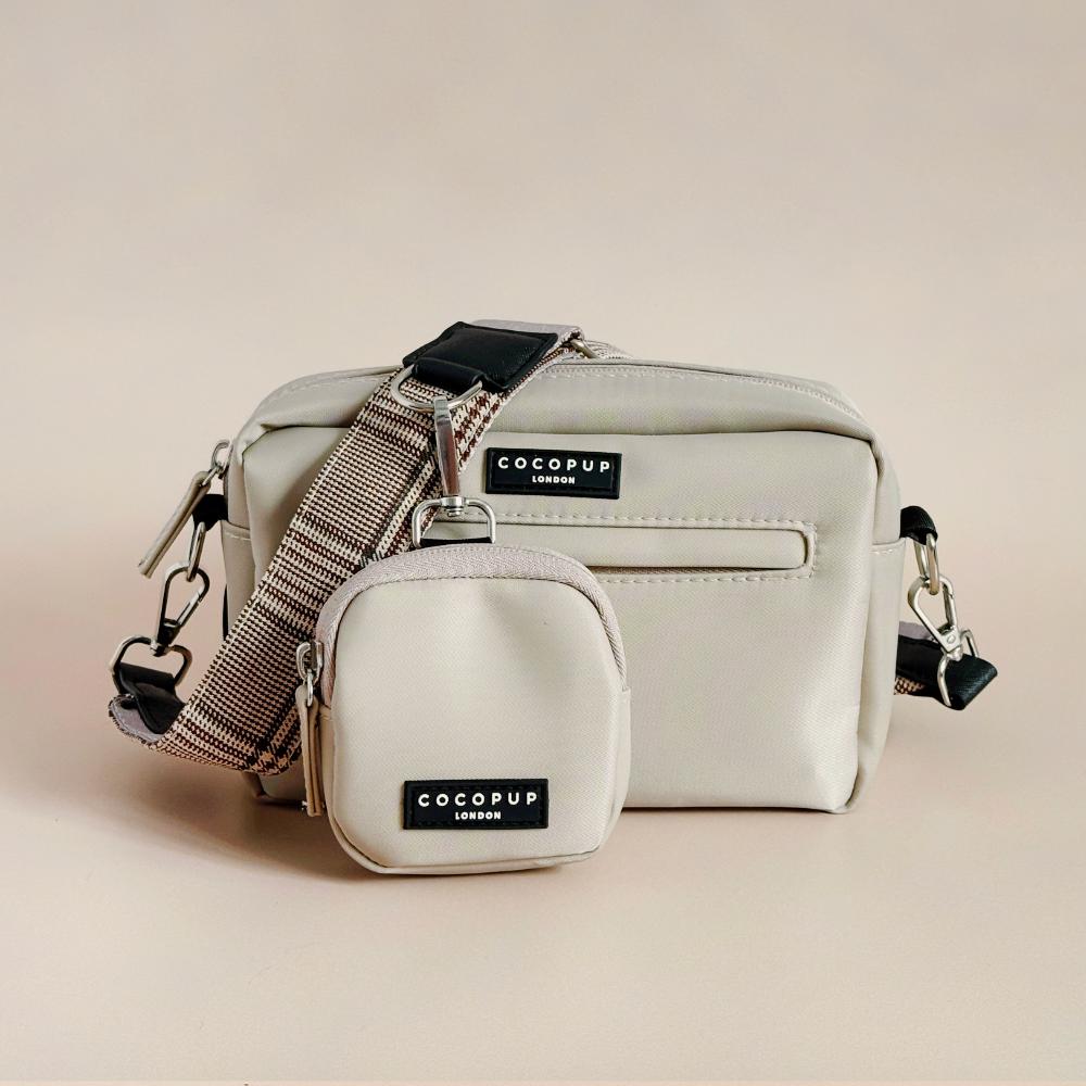 Our Bag Bundle includes: Bag, Treat Pouch & Pup Plaid Bag Strap (with inbuilt poop bag dispenser!)