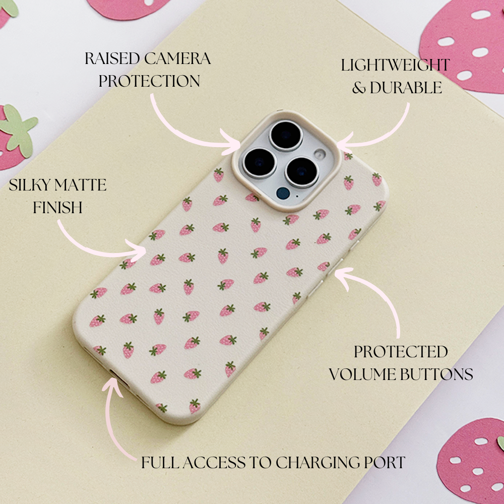 Designed to be as durable as it is adorable, it offers a snug fit and protection to keep your phone safe from life’s little mishaps. Whether you’re sipping iced lattes at a café or capturing picture-perfect moments, this case is your must-have accessory for a touch of berry sweet style! 🍓💫