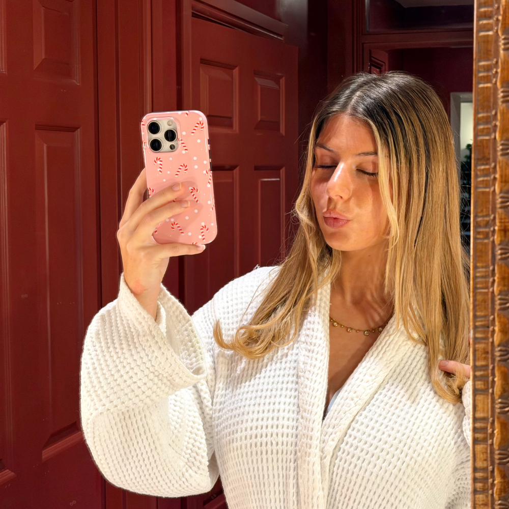 Sweet, festive, and oh-so-chic — the Candy Canes Tough Phone Case is your must-have holiday accessory! Featuring an adorable pattern of classic red-and-white candy canes sprinkled across a soft pink background with tiny white snow dots, this design perfectly blends Christmas spirit with a touch of pastel charm.