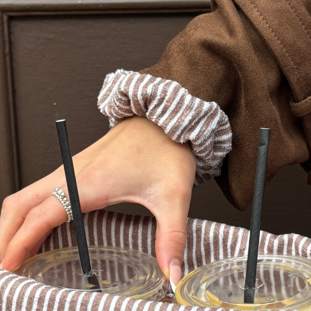 Soft, practical, and stylish – the Towel Scrunchie in Chestnut Stripes is the perfect everyday accessory.