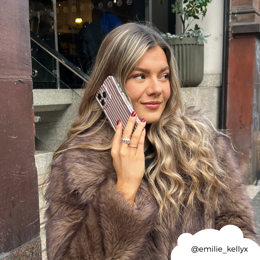 Minimalist design meets modern detail with the Wavy Phone Case in Chestnut Stripes.