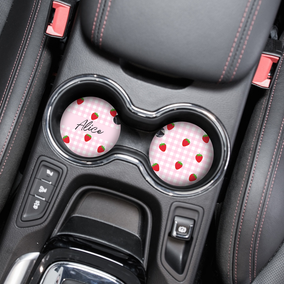 Personalised Name Car Coasters - Strawberry Picnic