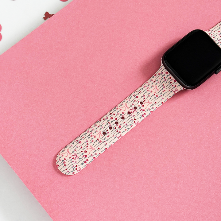 The softest powder pink background blooming with delicate flowers and pretty little bows, this strap is a floral fairytale come to life. It’s the perfect accessory to add a touch of romance and charm to your everyday look - whether you're on the go or dressed up for something special.